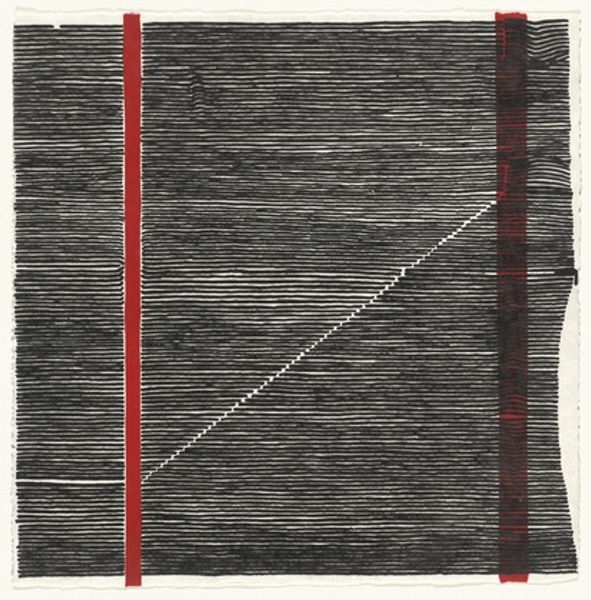 Abts works intuitively, without a fixed idea of the finished work. She mainly makes paintings that involve a long process of layering and readjustment. Drawings such as this are more spontaneous. She sets herself certain limitations and chooses particular colours, and then is guided only by the internal logic of each composition. Critic and curator Bob Nickas has described the result as ‘an image of the process of thought, the triangulation of the hand and the eye and the mind’. Gallery label, May 2019