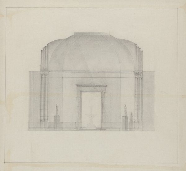 Editor: Here we have "Design for an Octagonal Gothic Pedestal Table with Pendentives: Elevation and Plan," dating from around 1800-1850 by an anonymous artist, rendered in pencil, etching, and print. It’s strikingly precise, almost clinical in its depiction. What do you make of it? Curator: I see a direct relationship to labor and the process of design. This isn’t about the finished product; it's about the material reality of envisioning an object. Consider the paper itself: its quality, where it came from, and who produced it. Editor: That's a good point; I hadn’t really thought about the paper. I was more focused on the drawing itself. Curator: Right, and what tools were used to make this drawing? Pencils, etching implements... each choice reflects a decision about material and process. Where did the pencil originate from? And were these mass produced at that time? It speaks to the evolving nature of production during this period, doesn't it? How readily were materials available? Editor: It does make me wonder about the intended audience. Was this for a craftsman, a patron, or perhaps for an educational purpose? Curator: Precisely! This object challenges traditional hierarchies, placing design and craft on a more equal footing. Is this ‘high art’ or simply a practical design blueprint? Editor: I guess I was initially drawn to the geometric precision and didn't really think of it in the context of materials. Curator: Exactly! This kind of drawing reveals a crucial relationship between intellectual conception and the eventual physical realization, or lack thereof. Thinking this way reveals this drawing to be more of a social object rather than art for arts sake. Editor: I’ve never really considered the social and industrial elements inherent to such a design before. I'll never look at preparatory drawings the same way again. Curator: Agreed, by centering our analysis on the production means of such a drawing we have a whole new approach to think of how an idea can take shape in social context.