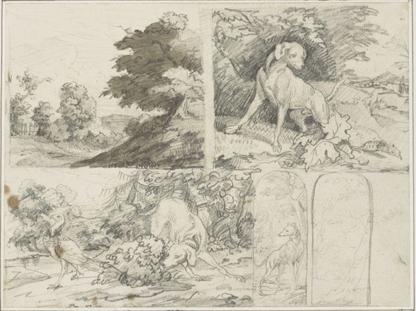 Théodore Géricault rendered these Sketches of a Cavalry Battle and landscape in pencil. Observe the dynamic tension in these sketches, the heroic imagery of the horseman, a motif laden with historical and cultural weight. The mounted warrior echoes the classical equestrian statues of antiquity, symbols of power, victory, and the glory of the empire. Yet, Géricault's composition introduces a psychological undercurrent: the chaos of battle, the fallen soldier, perhaps hinting at the fragility of human ambition. Consider the image of the horse; in ancient times it appeared as a symbol of untamed forces, of instinct and vitality. This primal energy surfaces again and again, from the mythical centaurs to the steeds of war, always carrying the weight of our deepest drives and aspirations. Here, the horse is intertwined with human fate, reflecting our eternal struggle between reason and impulse.