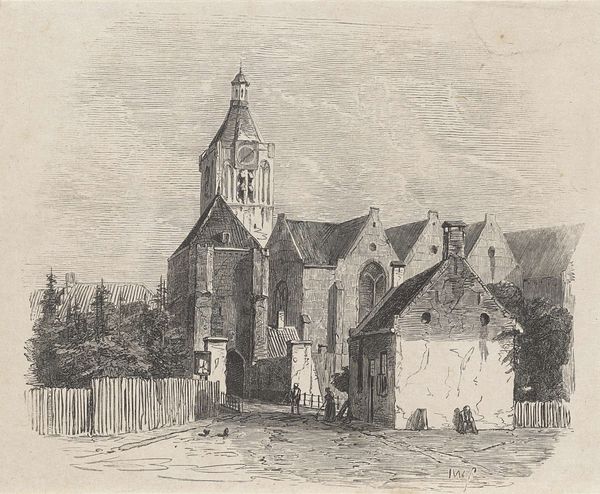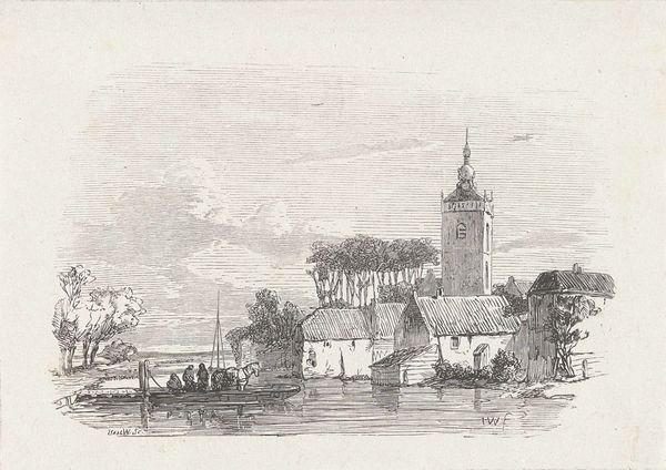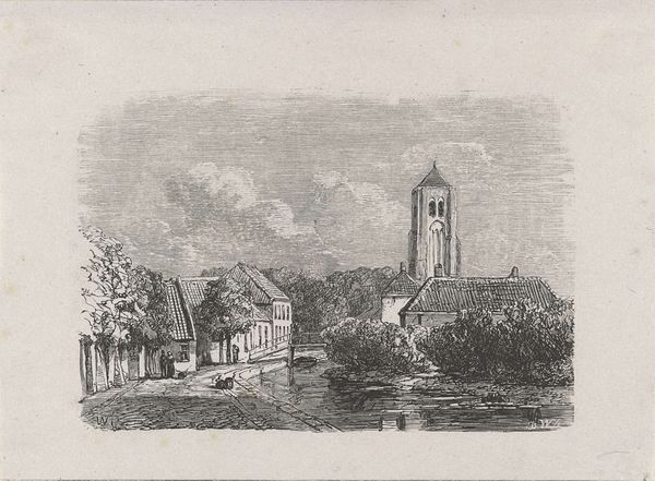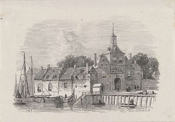This is Isaac Weissenbruch’s “Cityscape with a Gatehouse on the Water,” a black ink drawing. Note how the architecture, viewed across the water, looms in the composition. The artist uses precise lines to define the detailed structures, creating a tactile sense of the building's surfaces. Consider how the lines vary in thickness and direction. These formal choices not only describe the scene but also evoke a particular mood. The meticulous linework creates a contrast between the static architectural elements and the more fluid, reflective qualities of the water. The drawing is more than a mere depiction of a cityscape; it’s an investigation into the contrast between permanence and flux. It captures the essence of a moment, inviting us to contemplate the interplay between the structural solidity of the buildings and the ever-changing reflections on the water.