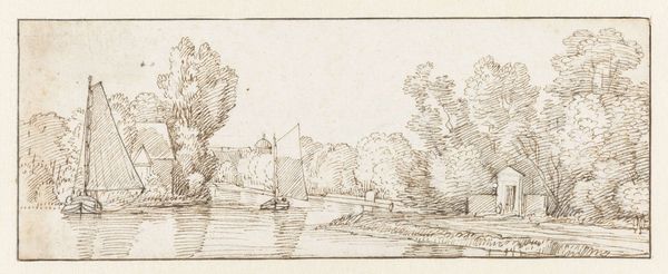 This drawing was made by Jan van Goyen. Observe the ferry, or "veer", with its passengers. Note the architectural ruins to the left, a constant reminder of time's passage and the impermanence of human creation. The symbol of water is also a prominent image, often representing the unconscious and the fluidity of life. The presence of ruins appears not only in van Goyen's work but also in that of his contemporaries and predecessors, carrying echoes of classical antiquity. Think of the "memento mori" in a Dutch still life. These images remind us of our own mortality, encouraging contemplation on the cyclical nature of existence. The water motif, too, stretches back through ancient mythologies. The river Styx is a powerful symbol of transition, and the unknown, evoking deep emotional responses tied to collective anxieties about life's uncertainties. Thus, van Goyen's simple scene transcends its immediate appearance, resonating with primal human concerns, weaving together past and present.