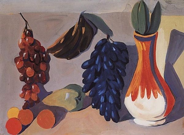 Martiros Sarian, a Soviet Armenian painter, created this vibrant still life with matryoshka dolls, though the date is unknown. Sarian lived through the tumultuous times of the Armenian genocide and the subsequent formation of the Soviet Union, experiences that deeply influenced his artistic vision. His choice to paint matryoshka dolls is fascinating. These dolls, traditionally representing motherhood and family, are set amongst fruit and pottery, evoking a sense of domesticity and cultural heritage. The bright colors and bold brushstrokes speak to a desire to celebrate Armenian identity within the broader Soviet context. Sarian once said that he sought to capture "the inner life of things," and here, the dolls seem to hold stories of resilience, womanhood, and cultural continuity. The painting doesn't just maintain traditional representations; it enlivens them with a distinctly Armenian sensibility. It reflects the artist's personal journey and his commitment to preserving cultural memory, offering us a glimpse into the emotional landscape of a people navigating identity and belonging.