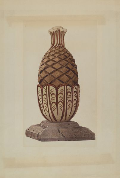 Marian Page made this drawing of a finial, we don't know when, or with what, but you can see her hand working to record this interesting object. The colors are limited, mostly earth tones, but that's enough to get a sense of the thing. Look at the base. The texture is built up, you can almost feel the crags and chips of stone. Then see how the artist uses a little hatching in the green parts, making the leaves pop out with a sense of volume? I think the transparency and thinness of the paint allows her to build up details in layers, which gives the object a sense of weight. For me, this piece connects to other art that loves looking at the everyday. Think of Bernd and Hilla Becher's photographs of industrial structures. They looked at water towers and gas tanks with the same kind of careful attention. Art can be about seeing the beauty in everything, right? There's no one right way to look at it.