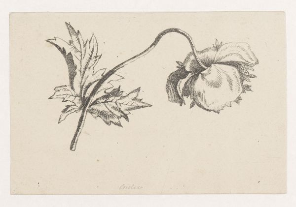 Elias Meyer created "Buket af Aks og Kornblomster," or "Bouquet of Ears and Cornflowers," an etching of delicate lines and intricate detail. The composition is formally structured around a central cluster of grains and cornflowers. Meyer masterfully uses line and texture to differentiate between the various botanical elements. The rough, bristly texture of the wheat stalks contrasts with the smoother lines of the cornflowers, creating a visual and tactile tension. This attention to detail not only showcases Meyer's skill as an etcher but also invites us to consider the natural world through a lens of formal elegance and scientific observation. The bouquet, tied loosely with a ribbon, suggests both fragility and abundance. This interplay challenges any fixed understanding of nature as purely ornamental or purely functional, presenting it instead as a complex system of interdependent forms.