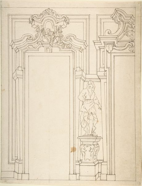 Pieter Beuckels created this design drawing for an honor gate in Wijngaardstraat, Veere in 1766. Executed in graphite, the artist has rendered a detailed sketch that gives us a peek into the architecture of the time. The choice of graphite, a relatively accessible material, allows for the intricate detailing we see here. Notice the columns, the sculptures, the ornate carvings – all meticulously planned out. But it also speaks to the purpose of the drawing itself. It’s a blueprint, a functional object meant to guide the construction of something grander. Consider the labor involved in realizing this design. The quarrying of stone, the carving, the construction – all physical processes reliant on skilled artisans and laborers. By looking closely at Beuckels’ drawing, we can appreciate the layers of work and the network of hands involved in creating the honor gate. This drawing reminds us that art and design are always rooted in material reality and the labor that brings them to life.