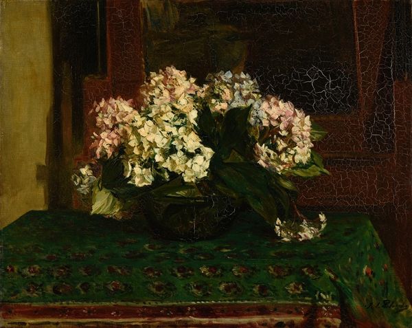 Henri Fantin-Latour made this painting of white roses using oil on canvas. Although paint and canvas are traditional materials, the artist uses them in an interesting way. You can see brushstrokes, and how the material of the paint builds up a surface; you can appreciate the artist's labour of depicting the delicate petals. In the artist's method, the roses become solid, almost like sculptures. Fantin-Latour also painted portraits, and there’s a related way of working in his still life. His artistic approach is characterized by close observation of his subjects, and careful rendering of color and light. There is a commitment to truth, and the amount of labour required for painting the still life is no less than for a history painting. Thinking about the materials and the making helps us understand Fantin-Latour's ambition to elevate painting, challenging traditional distinctions between genres.