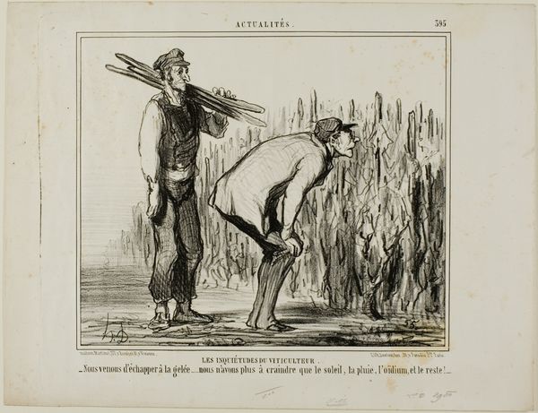 Honoré Daumier created this lithograph entitled 'A Haiti' amidst a 19th-century France grappling with its colonial legacy and the rise of abolitionist movements. The image portrays a skeletal figure, adorned in military garb, confronting a European gentleman. This caricature evokes the history of Haiti, the first free black republic, which emerged from a bloody revolution against French colonial rule. Daumier uses the trope of the grim reaper to cast Haiti's independence as a macabre jest, thus revealing the racial and colonial anxieties pervasive in French society. The title of the piece references Gesler, the tyrannical figure from the William Tell story, who demanded a symbolic act of submission to his authority. The visual pun suggests that France expected a similar level of subservience from Haiti. The drawing offers a glimpse into the complex interplay between political power, racial stereotypes, and the struggle for self-determination. It serves as a stark reminder of the enduring impact of colonialism on the collective psyche.