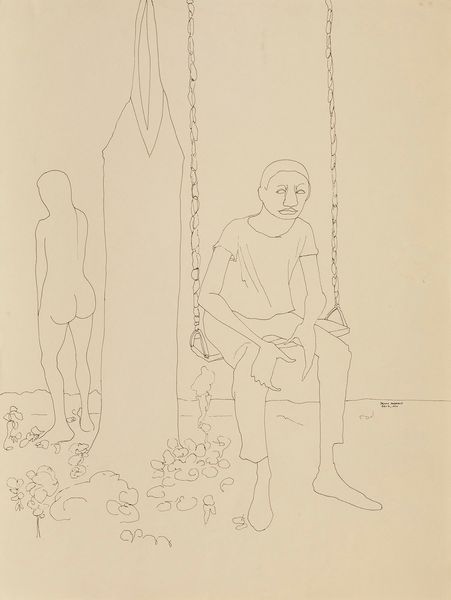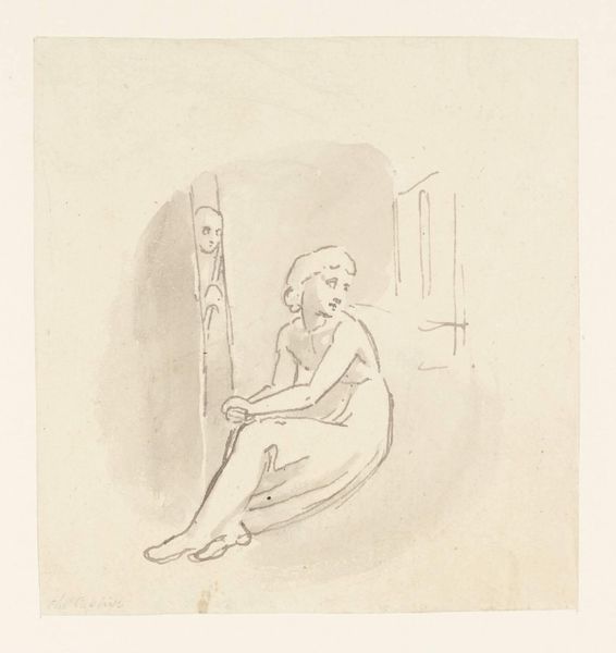 This is Hans Thoma's "Youth with Harp (Tile Design)", now at the Städel Museum. Rendered in pencil, the design presents a seated nude youth playing a harp, set within a square format that underscores its intended use as a tile. Thoma employs a spare, linear approach, focusing on the essential forms and contours. The youth's figure, though simply rendered, carries a classical grace, reminiscent of idealized forms found in ancient Greek art. This classical allusion is intriguing, especially when viewed through a structuralist lens. The harp, an instrument associated with harmony and order, contrasts with the sketch's raw, unfinished quality. This tension between form and process, between classical ideals and modern execution, invites us to consider how Thoma uses these visual elements to destabilize conventional notions of beauty and artistic expression. This work challenges us to look beyond the surface, to decode the underlying structures and ideas that shape our understanding of art.