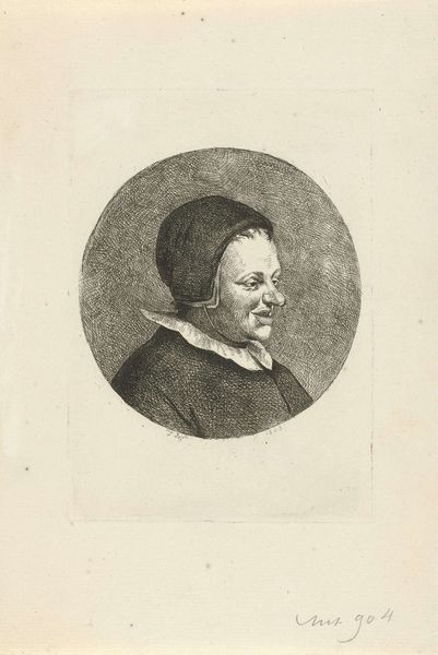 This is a portrait of Aechje Claesdr., made with etching by an anonymous artist. Notice the imposing ruff collar, a symbol of status and formality in 17th-century Dutch society. It frames the face, drawing our attention to the subject's expression. This circular form echoes in different contexts and times, such as halos around the heads of saints in Byzantine icons. The halo signified holiness, an aura of the divine. Here, the ruff serves a similar function, though secular, elevating the sitter within her social context. These recurring motifs create a sense of psychological continuity. The conscious and unconscious processes of the artist reveal the power of cultural memory. This formal, closed-off representation conveys a controlled emotional state, a powerful psychological barrier. The ruff collar, like so many symbols, has recurred and evolved in different historical contexts, carrying various meanings that trigger deep, subconscious responses.