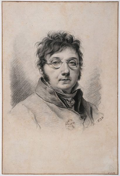 Curator: Before us hangs "Portrait of a Gentleman," an oil painting created around 1800 by Louis Léopold Boilly. Editor: He looks a little melancholic, doesn’t he? There’s a certain weight in those light blue eyes, almost pleading, contrasting with the crisp, almost militaristic cut of his jacket. Curator: That jacket, that direct gaze, and the meticulously arranged neckcloth…all these visual markers speak to the gentleman's standing in society, of course. But the Neoclassical style evident in Boilly's precise brushwork suggests a yearning for order, control in a time of significant political and social upheaval. Editor: The details, the way the light catches the medal pinned to his lapel...It makes me think about the weight of symbols. Medals represent honor, courage, service. Yet what do they signify in times of revolution? Does he wear it with pride, defiance, or perhaps with a hint of resignation? The romantic undertones give the medal emotional weight. Curator: Precisely! The gentleman’s clothing and decoration aren't just arbitrary details, but actively participate in discourses of power and identity. You know, what strikes me is how he, an elite individual, navigated that complex landscape of pre- and post-revolutionary France. How might his identity have been challenged or redefined in that era? Editor: And see how Boilly used the floral details in the cravat to soften the rigid structure? Those organic forms create an emotional connection to nature, which provides balance. Those light colors make an interesting contrast with the darkness of the man's suit. I can not help but wonder whether that symbolizes a hidden aspect of his personality, revealed and then covered again? Curator: An intriguing proposition! It forces us to consider that this seemingly straightforward portrait engages with multiple narratives – of class, politics, and perhaps, even repressed emotion. What it really asks of us, as contemporary viewers, is to examine our own biases and assumptions about what constitutes a dignified, authoritative representation of masculinity in the 18th Century. Editor: I agree. There is such fascinating depth held in a face of seeming serenity. Boilly created, in his careful detailing, a face which, like ours, changes with its observer.