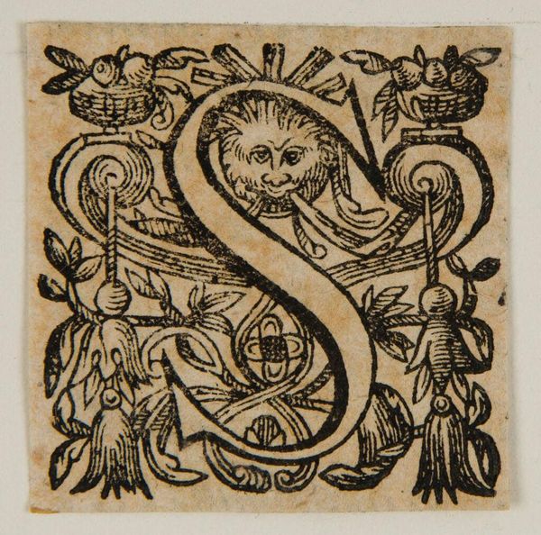 Editor: Here we have an anonymous artwork titled "Letter S." It looks like a woodcut, and the letter is surrounded by foliage. What narratives do you think this piece is trying to convey? Curator: Consider that even something as seemingly straightforward as a letter can be imbued with meaning. In what ways did this initial represent power and social standing in the context of the Renaissance? And how can we understand it in our contemporary world, where access to literacy and visual culture has shifted? Editor: It's fascinating to think about how much this little letter can tell us about shifts in cultural power. Curator: Indeed. It prompts us to reconsider the role of ornamentation and accessibility in shaping social hierarchies throughout history.