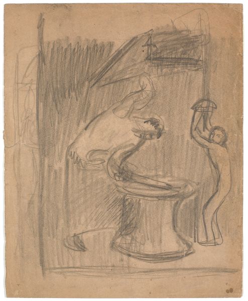 Curator: Cecil Collins created this etching, "Bird Smoking a Pipe," in 1939. It's quite small, just 95 by 73 millimeters. Editor: Oh, wow, it's like a glimpse into a bird's quirky little daydream. The composition is disorienting, a little absurd, you know? Curator: The etching technique, with its fine lines, renders a certain fragility and, dare I say, a hint of melancholy. Consider how the hatched lines define form. Editor: Definitely! But there's also something comical about a bird perched on a table, puffing away. What's he pondering, you think? The ephemeral nature of worms? Curator: Perhaps. Or maybe Collins uses the bird as a signifier of the human condition, the pipe serving as a symbol of contemplation and the interior life. Editor: That's deep. I just see a bird trying to look cool, failing miserably, and it makes me laugh. It's so awkwardly charming. Curator: Well, I think that's a viable interpretation as well. The beauty of art, I suppose, lies in its polysemous quality. Editor: Yeah, it's a good reminder that art is for everyone, even if you just giggle at a bird with a pipe.