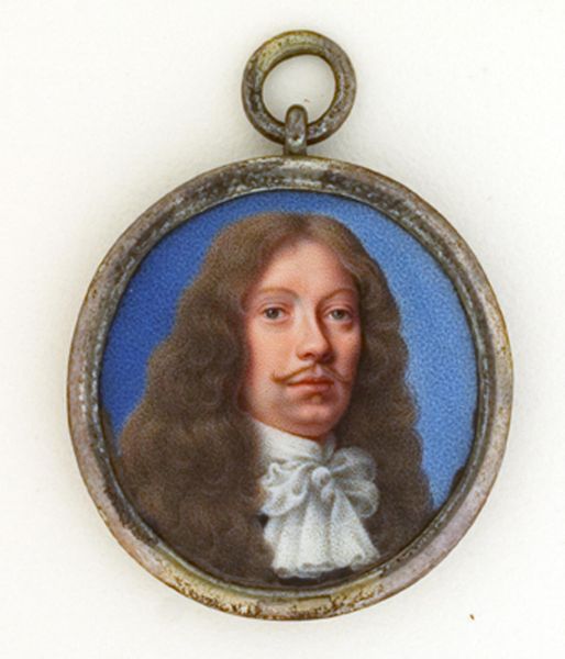 Curator: Hi, there. What can I help you with? Editor: So, this is a miniature portrait of Louis XIV, King of France, made between 1665 and 1675 by Jean Petitot. It’s oil paint, and it’s quite small, so that delicate work is striking. It feels very precious, doesn’t it? What strikes you about this work? Curator: It's a fascinating object when we consider its creation in terms of material and social history. Oil paint was becoming more refined, but the making of a miniature like this involved very specialized labour. Petitot, like other miniaturists, would have had a workshop of assistants to prepare materials, grind pigments, and even paint less critical areas. What does the oil paint itself tell us about the patronage systems at play here? Editor: I never thought about who else would have contributed! So the choice of oil paint itself signals something about this process? Curator: Precisely! Consider the sourcing of pigments: Where did the ultramarine blue come from? How was it traded? The very materiality of this object speaks volumes about global economies, resource extraction, and the skilled labour involved in creating an image of power. And it's deliberately small—think of the function it had for personal display as well as for purposes of diplomacy. Editor: So it is not just an image of Louis, but a symbol of production and power as well. That adds a completely different layer to its reading. Curator: Indeed. Analyzing its materiality allows us to challenge any notion of artistic genius in isolation, drawing attention to networks of exchange, extraction, and production. Editor: That gives me a whole new appreciation for miniature portraits. Thanks so much! Curator: My pleasure. Considering art in terms of labor, trade, and power relations can be a very insightful experience.