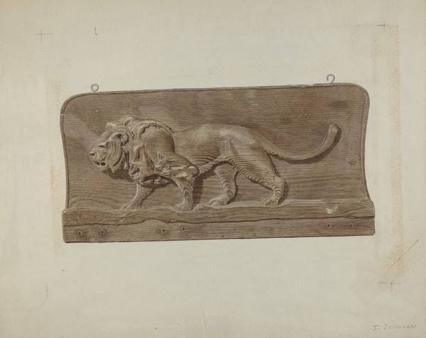 Curator: Here we have Antoine Louis Barye’s “Walking Lion,” a bronze relief sculpture housed here at the Harvard Art Museums. Editor: It strikes me as… melancholic. The lion strides forward, yes, but with such a heavy, world-weary air. Curator: Barye, working in 19th-century France, often depicted animals with a Romantic sensibility, reflecting the era’s fascination with nature and its power. Lions, of course, had a long association with imperial power. Editor: Interesting. For me, it’s the surface texture that speaks. All those minute undulations in the bronze suggest life, but a life burdened, almost fossilized. The lion becomes this symbol of faded glory or some lost vitality. Curator: Indeed. Barye's work was celebrated for its realism, reflecting a broader movement in art towards observed detail. Editor: Which maybe underscores the sadness. The artist captures the king of beasts not in some triumphant pose, but in the middle of what looks like an exhausted walk, almost as if questioning his role. Curator: That tension you perceive is exactly where art can open up a dialogue about power, representation, and our own place in the world. Editor: Precisely. It’s a piece that stays with you, a growl that fades into a sigh.