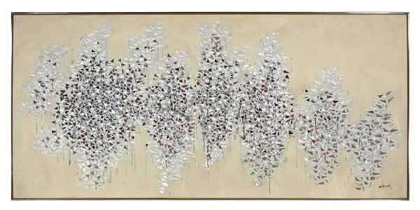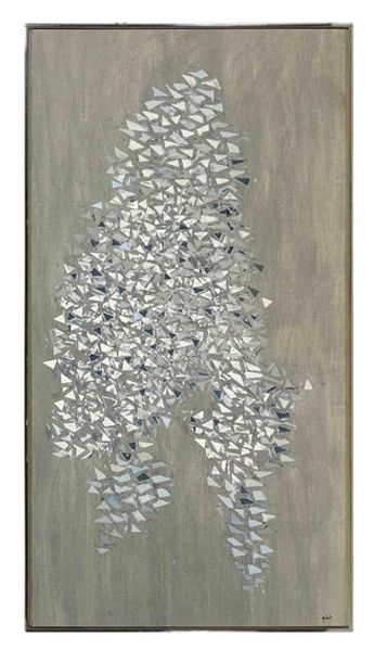 Robert Goodnough created this painting titled Vertical-Blue-Brown-White using paint on canvas. Observe how the composition is immediately striking; it’s an intricate dance of fragmented forms against a muted background. The interplay of colour, predominantly blues, browns, and whites, creates a sense of depth and movement, with the triangular shapes lending a dynamic energy to the canvas. Goodnough’s work here seems to engage with ideas around chance and order, reflecting the post-war era's fascination with existentialism. The seemingly random placement of shapes hints at chaos, yet the overall composition suggests a hidden structure, a system beneath the surface. This tension destabilizes our conventional understanding of painting, challenging the viewer to find meaning within the abstraction. Consider how the very act of painting, the application of pigment to canvas, becomes a philosophical statement. This is not merely decoration but an exploration of the limits of representation. It's a visual language where each stroke functions as a sign, inviting us to interpret the underlying codes and cultural values.