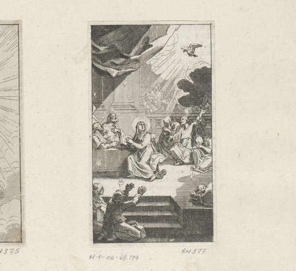 This is Sébastien Leclerc’s etching of the Immaculate Conception, made in the late 17th century in France. The image captures a key moment in Catholic theology: the belief that Mary, the mother of Jesus, was conceived without original sin. Leclerc employs a visual language deeply rooted in religious doctrine. Mary is surrounded by light, angels, and symbols of purity, all reinforcing the divine nature of the event. The kneeling figures below emphasize the faithful’s awe and reverence. France at this time was under the devoutly Catholic Louis XIV. The Church held immense power, and art served as a tool for religious instruction and the reinforcement of social order. Leclerc, working within this environment, creates an image that upholds traditional beliefs and reinforces the Church's authority. To understand Leclerc's work fully, one might delve into theological texts, explore the patronage networks of the time, and examine the role of religious art in shaping public belief. Only then can we appreciate the complex interplay between art, religion, and society in 17th-century France.