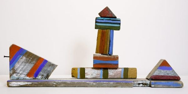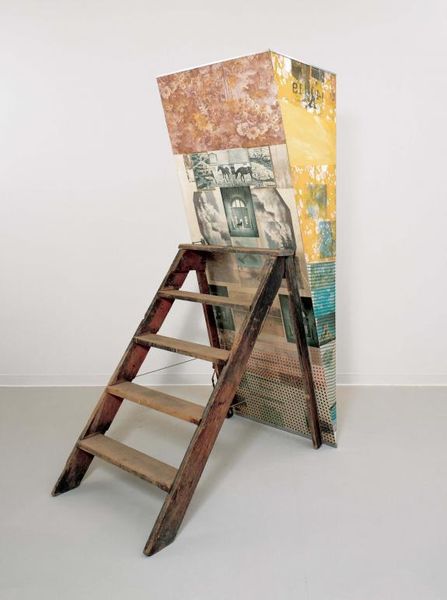 Robert Rauschenberg made this sculptural piece, "The Tower," out of found objects – a quirky assemblage that invites a double-take. The surface texture is where it gets interesting, right? Each element has its own story, its own wear and tear. Take that painted panel with the broom—the colors are laid on in these broad, almost haphazard strokes, yet somehow, it all comes together. It’s like he's saying, hey, art is just life, and life is messy. I love how the umbrella sits perched on top, like a final, slightly absurd punctuation mark. It reminds me of Kurt Schwitters, maybe, in the way he elevates the everyday to something poetic, but with Rauschenberg, there’s always this sense of humor, a wink. Art isn’t about perfection, it’s about the conversation.