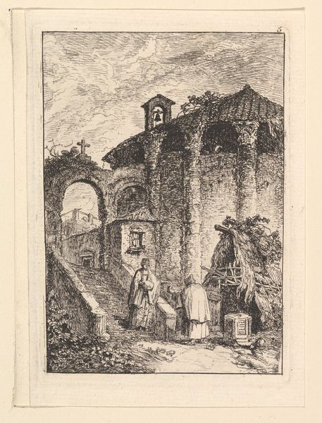 This print by Hubert Robert captures the allure of antiquity through the motif of ruins, a common trope in 18th-century art. Note the classical columns and crumbling archway, symbols of a bygone era of architectural grandeur. Observe how the statue of a woman is placed prominently in the foreground. We see a resurgence of classical ideals during the Renaissance, a longing for the perceived harmony and order of the ancient world. This yearning is mirrored in Robert's work, reflecting his deep interest in the cyclical nature of history. The placement of figures amidst the ruins evokes a poignant sense of reflection. The presence of such ruins speaks to our collective memory, reminding us of the impermanence of human achievement. It triggers a subconscious awareness of time's relentless passage. Through Robert's art, we are reminded that symbols of the past are never truly lost. They resurface, evolve, and take on new meanings, weaving a complex tapestry of cultural memory that continues to shape our present.