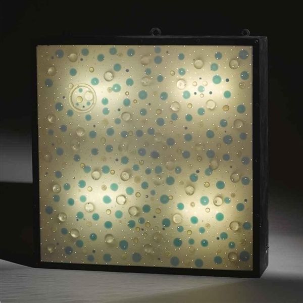 Editor: Gyula Kosice’s "Lumínica con dos gotas", made in 1970. It's listed as a sculpture. It strikes me as quite playful, almost futuristic, despite its age. The use of light and simple geometric forms creates a unique and calming effect. What symbolic meanings or deeper connections might you see embedded in this work? Curator: The drops immediately suggest not only water but the very essence of life, echoing our planet's vital resource and, by extension, the life force within us. But consider also, isn't water often used symbolically for purity or cleansing? Editor: Absolutely. It is intriguing how simple forms evoke fundamental meanings. It goes further too; the placement and illumination, do you think they suggest a particular perspective, almost like constellations? Curator: You're perceptive to note constellations in its patterning. Indeed, light here could represent knowledge, guiding our human search. But Kosice, known for his concept of 'hydro-urbanism', pushes further, envisioning cities floating in space, sustained by water, integrating art, life, and technology. Does this sculpture reflect some aspiration for the future or project beyond immediate context? Editor: I see! That explains the blend of organic shapes and almost technological execution. It feels simultaneously grounded and aspirational. The artwork then could suggest humanity’s continuous adaptation. Curator: Precisely! The drips suggest temporality; constant change and possibility, that we keep refining our understanding in different times and settings. It's like it poses the question, how do we capture ephemerality with such strong materials and techniques? Editor: I hadn't thought of it that way. Considering his 'hydro-urbanism', seeing drops of water morph into floating utopias brings new meaning and complexity to abstraction and symbolism in the work. Curator: Exactly. Kosice lets viewers re-evaluate existing images in new circumstances and, using art, prompts people to imagine new realities with art and technologies.