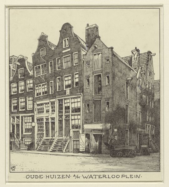 Editor: Right, next up we have Willem Wenckebach’s “Oude Schans hoek 1ste Batavier Dwarsstraat te Amsterdam," created between 1870 and 1926. It's an etching—quite a detailed cityscape, really, in monochromatic print. I am immediately drawn to the quiet stillness in it, although, there seems to be something alive on it too, maybe a glimpse of humour, maybe a glimpse of life as it happens! What captures *your* eye, your imagination here? Curator: Well, darling, it's that push-pull you picked up on, isn’t it? This scene exists in this perpetual balance of serene calm and bustling everyday-ness, doesn't it? The etching breathes in and out: the solidity of the architecture meeting the flitting leaves, and oh, isn't the suggestion of movement there despite the still, printed quality? Makes you think of ghosts and shadows and echoes. The etching is done very much in a representational manner. It *exists* – the buildings have very human like characters if you follow, wouldn't you agree? Editor: Oh absolutely. In a way that it's incredibly life-like. With such sharp detail, though, what kind of Amsterdam do you think he was trying to portray? Is there any sort of underlying message within it? Curator: Wenckebach captures an Amsterdam caught between eras, I think. He invites us to feel the soul of this corner. Can’t you imagine strolling these streets yourself and meeting a memory? His affection for his birthplace, for that life seems to burst forth from it for all the world to embrace! A time capsule, but so so vibrant! What an accomplishment! Editor: I completely agree. I find the historical context much more poignant having seen it through Wenckebach’s eyes. Thanks for your perspective! Curator: Anytime, darling! Always lovely to wander those streets!