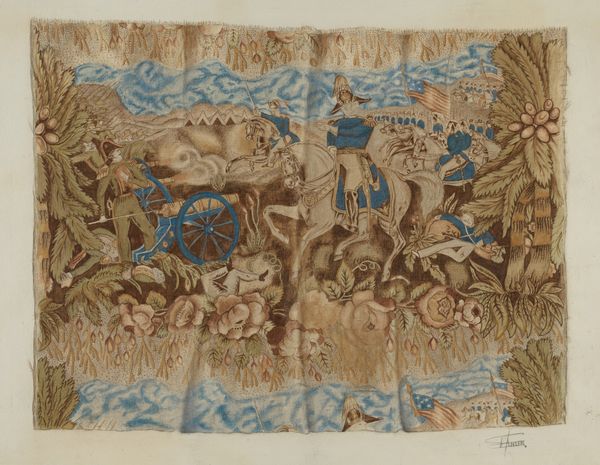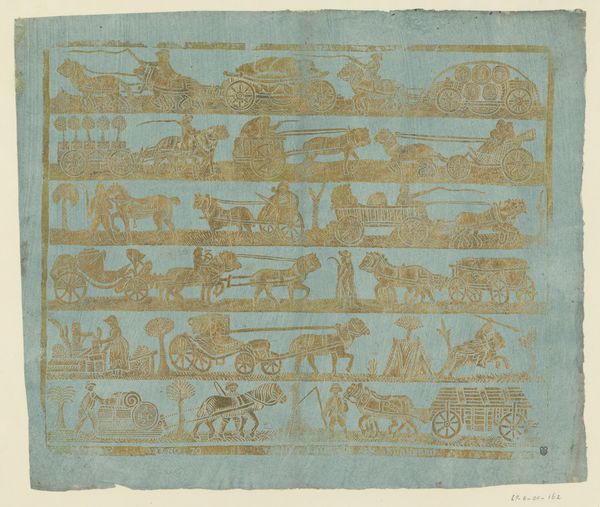 This print of knightly scenes, made by Paul Reimund around the turn of the 19th century, presents us with an interesting question: is it fine art, or something else? Look closely, and you'll notice the material isn't paper, but textile. The imagery has been printed in gold leaf onto the blue fabric, in three horizontal bands depicting knights and courtly life. What might have been its purpose? Was it meant to be framed and hung on the wall, or used for some other decorative purpose? It is through the making process that this print acquires its social meaning. The use of textile and gold leaf, combined with the subject matter of courtly life, suggests a connection to luxury goods and aristocratic culture. But the print medium also implies a wider distribution, and perhaps a more middle-class audience. The blending of these elements challenges our traditional categories, inviting us to consider how materials and techniques can bridge different social spheres.