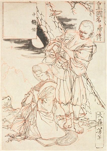 David Bles created this pencil drawing titled 'Schoonouders Roelants-Lewe van Middelstum met hun kleinzoon Egbert' whose date is unknown, now residing in the Rijksmuseum. The composition arranges three figures, each articulated through Bles's distinct linear style. A child, seemingly caught mid-action, is positioned separately from the grandparents, who are rendered with a network of delicate strokes. The drawing style shows a study of light and form, focusing on how clothing drapes and falls, defining the figures. Bles uses line to explore familial dynamics and generational connections. The sketched lines create not just outlines but volumes, suggesting depth and presence through shading and texture. It invites us to consider the fleeting moments of observation captured through the immediacy of drawing. It challenges our understanding of portraiture by presenting it as a study of forms and relationships rather than a static representation. Through Bles’s manipulation of the pencil, we see a representation of a study into form and light, as well as an intimate familial moment captured with sensitivity.