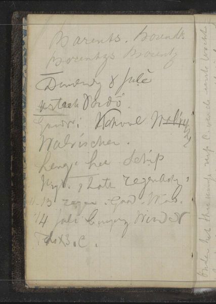 Editor: Here we have "Notities," created between 1854 and 1868 by Johannes Tavenraat. It's a drawing in colored pencil and ink on paper, currently held in the Rijksmuseum. My first thought is, wow, it's like peering into the artist's personal thoughts. It looks like pages filled with sketches and scribbled notes. What can you tell me about it? Curator: Indeed. On the surface, this appears to be a simple collection of notes, but it offers a glimpse into the 19th-century artistic process and the artist's role within a changing social and economic landscape. This kind of sketchbook unveils the intersection between art-making and commerce, a dance between the creative spirit and the need for patronage, typical of Dutch Golden Age artists, many of whom juggled art with trade or civic duties. What strikes you about its visual structure? Editor: The seemingly random placement of words and drawings... It's far from a formal painting intended for a gallery. It looks more like private musings. Curator: Precisely. This brings forth a fascinating tension: is this solely for the artist's eyes, or is there an intention, conscious or not, for eventual display or sale? Sketchbooks have a complicated public role: meant to be a visual record and reminder to the artists and, in some instances, created to impress and allure. What socio-political narratives could these "notes" subtly unveil about 19th-century Dutch society? Editor: I guess I hadn't thought of the role of art as "record," but it does make me think about the stories these notations can suggest beyond their apparent surface. It has really opened my eyes to how a sketch, or notes like these, are always, also, tied into their historical and economic context. Curator: And, to consider, this intimate look into an artist’s mind challenges the romanticized image of the solitary artist and presents a more complex portrait embedded within the fabric of society.