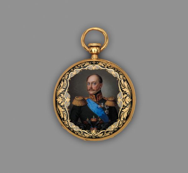 Editor: We’re looking at an Etruscan revival pendant, created between 1830 and 1899 by Eugène Fontenay. It combines painting and sculpture using gold and other metals to depict a miniature scene. The incredible detail for such a small object really strikes me. What catches your eye? Curator: I immediately consider the socio-political context of the 19th century, specifically the rise of nationalism and archaeological discoveries. This pendant reflects a fascination with classical antiquity and a desire to connect with a perceived "golden age." This piece makes me wonder how the growing museum culture influenced popular taste, stimulating this market for historicist jewelry? Editor: That's a great point! I hadn't thought about the museum angle. Curator: The so-called "Etruscan revival" speaks volumes about the public's hunger for art that offered narratives, moral lessons, or simply beauty rooted in historical legitimacy. How does the imagery influence your perception of its historical purpose? Editor: Well, it’s very neoclassical, a style referencing Greco-Roman imagery, a style promoted by state-funded academies and seen as a high cultural symbol. Its miniature scale transforms it into a portable status symbol. Almost like its wearer would demonstrate their high level of knowledge by owning the pendant. Curator: Exactly! Its wear communicates much about its patron's place within a stratified society. Did these "revivals" actually democratize art or just reify existing social hierarchies through aesthetics? Editor: I guess it did both things at once. I will have to consider these angles of cultural value when studying artworks. Curator: Precisely. Studying historical context is paramount.