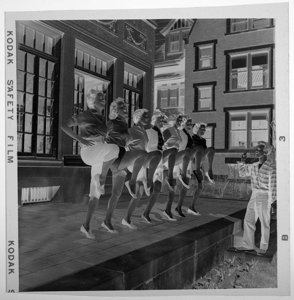 Curator: This photograph, by John Deusing, is titled "Untitled (commercial laundry operation)." The image shows workers in what appears to be a large laundry facility. Editor: It has a surreal quality, almost ghostly. The inverted tones make it feel distant, yet the scene itself is intensely human, depicting work and labor. Curator: Exactly. The means of production are front and center. We see the physical labor involved, the sacks of laundry waiting to be processed, the repetitive tasks. Deusing really captures the materiality of this industry. Editor: And the social implications are huge. Look at the figures, positioned within a clearly structured environment. What were the working conditions? Who owned the laundry? These are the questions that come to mind. Curator: Indeed. The photograph invites us to consider the politics of this kind of imagery, the public role of documenting such spaces and the lives intertwined with them. Editor: Ultimately, it makes me appreciate how art can reveal hidden histories, even in the mundane. Curator: Agreed, it highlights the often-overlooked realities of labor and the systems that shape our society.