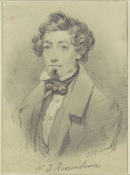 Johannes Hendrik Veldhuijzen drew this portrait of a man with a bow tie in July 1861. It’s a drawing done with graphite pencil, on what appears to be paper, or perhaps a very thin card. Pencil drawings like this one are interesting because they occupy a space between the preciousness of painting and the reproducibility of print. Veldhuijzen would have needed a steady hand and a sharp point to achieve this level of detail. Look closely, and you can see the subtle variations in pressure he used to create depth and shadow. The social context here is also important. Graphite pencils only became widely available in the 19th century, thanks to industrial production. They democratized drawing, making it accessible to a wider range of artists and amateurs. Veldhuijzen's choice of this relatively new medium speaks to a changing art world, where traditional hierarchies were beginning to blur. A work like this challenges our assumptions about what constitutes a finished, valuable artwork.