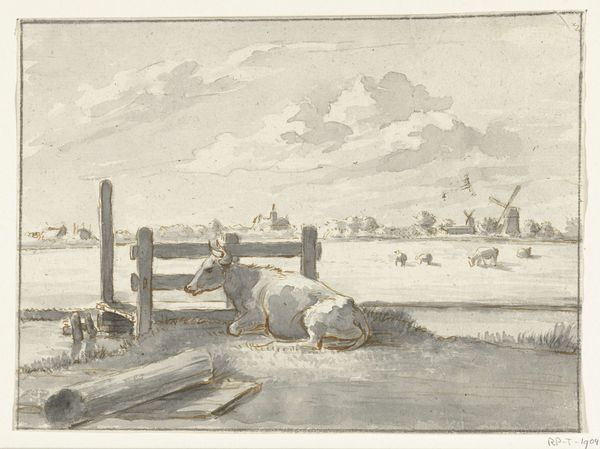 This delicate landscape, drawn by W. Barthautz, presents a tranquil scene dominated by symbols of Dutch rural life: a windmill, grazing cattle, and a hardworking farm woman. The windmill, historically vital for land reclamation and grain production in the Netherlands, speaks to human ingenuity. The presence of livestock—cows and a goat—anchors the scene in a pastoral tradition. Note how the humble goat, often associated with fertility and vitality in ancient mythologies, rests near the woman, its watchful eye suggesting guardianship. The act of carrying water is a timeless motif, a testament to labor and sustenance. We can think of countless images of women carrying water from ancient Greek vase paintings to the modern-day photography of labor. These symbols, interwoven, reflect a harmonious relationship between humanity and nature. The landscape resonates with a deep, subconscious connection to agrarian roots, evoking nostalgia and the cyclical rhythm of life. This image, in its quiet way, touches upon our shared cultural memory, reminding us of the enduring power of the land.
