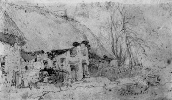 Editor: This is “Landscape with House near St. Tropez,” a pencil and charcoal drawing by Ker Xavier Roussel, dating from 1906-1908. It has a rather ghostly atmosphere, I think, softened by the use of dry media. What jumps out at you when you see this drawing? Curator: The roughness of the charcoal and pencil is telling. Roussel, though aligned with the more decorative aspects of the Nabis, wasn't afraid to get his hands dirty, was he? Think about the process. Charcoal, even pencil, leaves a residue, a trace of its making on the paper itself. How does the directness of the medium affect your perception of "landscape?" Editor: It makes it seem much less idealized. Almost like a quick study rather than a finished painting intended for exhibition. Curator: Exactly. And what does that suggest about the artist's intentions, and, indeed, the possible market for such work at the time? Was this piece meant to be displayed, or was it for Roussel's personal use, a step in the larger creative process? Also, let’s not ignore the socio-economic context here. The South of France was increasingly a playground for the wealthy, who extracted resources from its land. Could this piece, with its emphasis on the materiality of the land through its earthy mediums, be a subtle commentary? Editor: That’s a really interesting point. I hadn’t considered it that way. Curator: It challenges the usual narrative of Impressionism. Instead of focusing solely on light and color, we're forced to consider the labor and materials that went into its creation, the raw materials that were part of a growing economy. Editor: It definitely changes how I see Impressionist landscapes. I will pay more attention to materials and artistic work from now on. Curator: And that shift in focus might offer a more grounded, even radical, interpretation. It's all about uncovering the layers of production, both in the image and in the world it reflects.