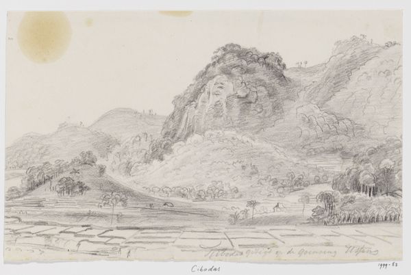 Curator: Looking at this drawing, I immediately feel a sense of stillness. There’s a quietude that speaks volumes. The pale tones and delicate lines seem to hold their breath. Editor: You’ve picked up on something key, I think. We’re looking at "Ansicht der Wartburg vom Johannistal," or "View of the Wartburg from the Johannistal," a landscape rendering crafted with ink, pencil, and chalk, likely between 1790 and 1794, by Georg Melchior Kraus. It resides here in the Städel Museum. Curator: The Wartburg perched up there on the hill seems to be guarding secrets. Castles always make me think of fairy tales and, well, imprisonment. Editor: Well, in that sense, your intuition is on point. Wartburg isn't merely a fortress; it's brimming with history, and it served as Martin Luther's refuge where he translated the New Testament into German. That is a really neat detail. The piece sits interestingly on the cusp of Neoclassicism and Romanticism—landscape as a mirror to both reason and passionate feeling. Curator: That position between styles is neat. It brings to mind what that space means, literally. What's wild about that historical detail you mentioned about Wartburg and Luther is that landscapes so often function as silent witnesses to pivotal moments. The land remembers. It holds stories that the architecture on it can't. I guess this place of supposed imprisonment was Luther's most freeing moment? Editor: Precisely. Landscapes in art transcend simple depictions. The symbolism connects to themes of sanctuary, cultural identity, and historical weight. Kraus uses a rather understated palette. Look how he uses light and shadow. This emphasizes form but also invokes a sense of reverie and introspection, encouraging a dialogue between past and present. Curator: This gives me a sense of wonder. Editor: To summarize then, this particular artwork gives insight into a defining cultural moment in the history of the castle itself, making it not just a scenic view, but also an emblem of transformation and persistence. Curator: Which makes one think of that quote "history doesn't repeat itself but it often rhymes." Perhaps the Wartburg and this drawing's creation were a couple of the early beats of the rhyme we are currently hearing.