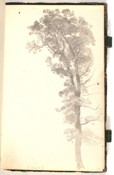 Editor: Here we have "Træstamme med kviste og løv," or "Tree trunk with twigs and leaves," a pencil drawing from 1868 by P.C. Skovgaard. I’m struck by its quiet, almost contemplative mood. The delicate lines seem to capture a fleeting moment in nature. What catches your eye? Curator: Ah, Skovgaard. He’s whispering secrets to us from the Danish countryside. I find myself drawn to the intimacy of this sketch. It's like a page ripped from the artist’s own visual diary. The texture of the bark is beautifully rendered. Doesn’t it make you want to run your hand over it? There's a wonderful realism but with a hint of Romanticism. What does it evoke in you? Editor: I think you're right about the texture, I see what you mean about wanting to touch it. And I can almost feel the wind rustling through the leaves, even though they’re barely suggested. I guess it does make me want to be there. Does the sketch tell us anything more about Skovgaard himself? Curator: It does indeed! It suggests Skovgaard’s deep reverence for nature, for the little moments in life. Think of him out there, in nature with his sketchbook, just taking note. It reminds us that art isn't always about grand gestures; sometimes it's about capturing the simple beauty right in front of us. Editor: I guess I hadn't considered the idea of art capturing these moments of quiet reflection. Curator: Skovgaard, bless him, encourages us to find our own little moments. Editor: Absolutely, I'm going to look at other sketches as finished pieces now. Thanks!