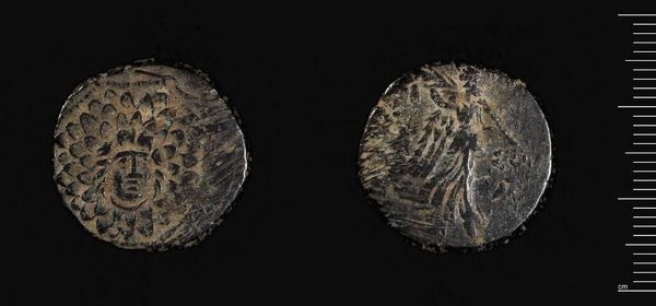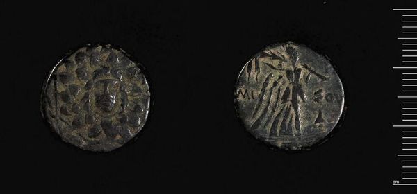 Editor: Here we have a coin of Sinope, made by Mithradates VI Eupator. What strikes me is the wear and tear, the sense of history embedded in the metal. What do you see in this piece? Curator: I focus on the coin's production. Consider the labor involved in extracting the metal, the societal structures enabling such a process. What materials were used, where did they originate, and how does the act of minting relate to royal power and trade? Editor: So you are saying that the very existence of this coin speaks to the material conditions of its creation? Curator: Precisely. The coin isn't just an image; it's a product of its environment, reflecting the resources, technologies, and social organization of its time. Thinking about this adds depth to our understanding. Editor: It really does change how you look at something like this, doesn't it? Thanks!