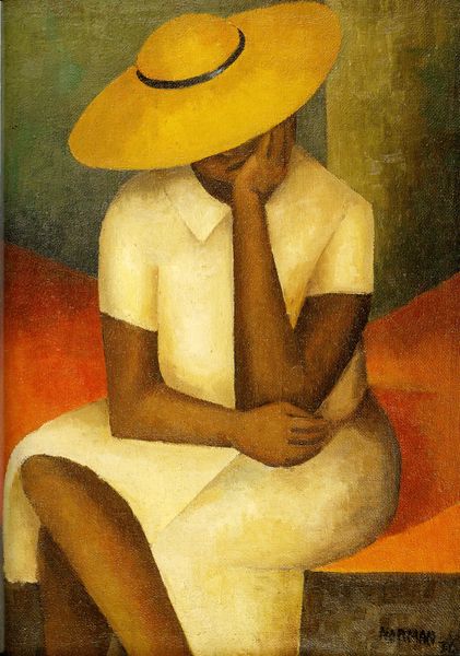 Tarsila do Amaral painted A Negra using oil on canvas, and you can see how she's smoothed out the surfaces, almost polishing them. It’s like she's aiming for a certain kind of simplification. The colour feels essential here, doesn't it? That orange-brown that makes up the figure's skin, it's so striking and makes the figure pop. Look closely, and you'll notice how she builds the form with subtle gradations, giving it a sculptural presence. There's this one spot, right at the crease of her arm, where you can see the brushwork. It's a small detail, but it reminds you of the artist's hand, the physical act of applying paint to the canvas. It reminds me of Picasso's treatment of the human form, but with a Brazilian twist, and with a very strong understanding of the figure. It's like she's saying, "Here's a way of seeing that's both familiar and totally new."