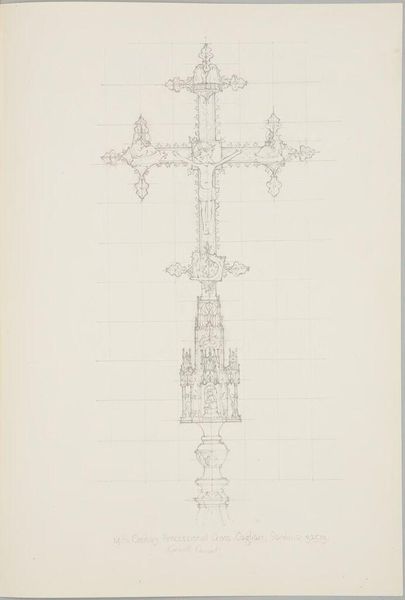 Curator: This is Kenneth John Conant's architectural drawing of the Campanile at Florence Cathedral. Editor: It feels so fragile, almost like a ghost of the tower. Gives me a wistful feeling. Curator: The Campanile, or bell tower, holds a significant place in Florence's history, and in architectural history broadly. Conant's rendering invites us to consider the processes of documentation and preservation. Editor: Right, you see the meticulous detail. I wonder, was he trying to capture its spiritual essence as much as its physical form? Curator: Perhaps both were intertwined for Conant. The drawing offers insight into how we perceive and immortalize cultural heritage through art. Editor: It really prompts a reflection on how we choose to remember monumental structures. Curator: Absolutely, and its visual delicacy contrasts starkly with the tower's imposing physical presence, doesn't it? Editor: It does. I think I’ll carry that quiet tension with me.