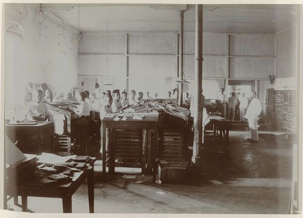 This photograph depicts the typesetting room of the Deli Courant in Medan. The typesetters are surrounded by complex machines that bring to mind the Tower of Babel – a symbol of linguistic and cultural confusion. The printing press has always been a powerful symbol. From Gutenberg’s Bible to revolutionary pamphlets, the printed word has been a force for change and, at times, control. The act of setting type is a meticulous, almost monastic task, far removed from the speed of modern communication. We see here the human element in mass production. The arrangement of these workers within the space evokes the psychological aspect of labor – the feeling of being a cog in a larger machine. The light fixtures hanging above echo the relentless, repetitive nature of their work. This scene captures a moment in the ongoing dance between humanity and technology. The symbols of communication have shifted from the chisel to movable type, and now to digital codes. And yet, the desire to record, transmit, and understand remains a timeless human endeavor.