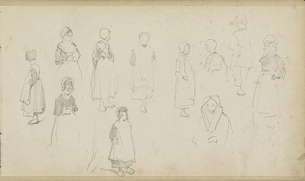 Adrianus Eversen created this undated sketch, entitled Figuurstudies, which translates to “Figure Studies” in English. Made on paper, the study presents us with a variety of characters within the artist’s community. Eversen was known for his cityscapes, and here his deft observation skills are turned to the portrayal of everyday people. What strikes me, and what is perhaps the most important element of these ‘studies,’ is the diversity present. We see laborers, children, and women of varying social positions. Some characters are alone, and some are engaging with each other. The image of a woman accompanied by a Black child invites us to consider the dynamics of race and class in 19th-century Europe. There is a sense of immediacy to these studies, almost as if Eversen captured these figures in passing. We feel as though we are there with him, observing and documenting this slice of history. The loose sketch-like quality of this work encourages reflection on how identity and social role are communicated through gesture, posture, and clothing.
