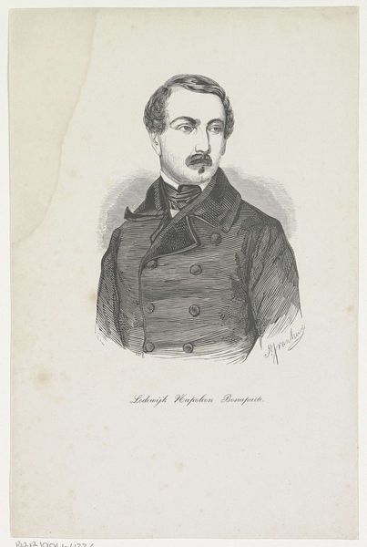 Curator: Welcome. We're standing before "Self-Portrait of Ernst Freiherr von Bibra," a pencil drawing dating from around 1850 to 1878. Bibra was, among other things, a German author and natural scientist. Editor: You know, it has this uncanny, dreamlike quality. The way the portrait seems to almost float on the page, the soft gradations of the pencil…It's as if I'm looking at a memory, or maybe a ghost. Curator: The realism is softened somehow, certainly. Considering Bibra's varied intellectual pursuits, his role as both scientist and novelist, it's compelling to see him represent himself through such a... gentle, perhaps even romantic, lens. Self-representation, of course, is always a construct. Editor: Right, this isn't just some snapshot of reality, is it? And look at that direct gaze... There's a challenge there, almost a hint of defiance. He is daring you to interpret him. Curator: It’s important to remember the sociopolitical context in which this work was created. This era saw an increased desire among academics to both understand and make the world more navigable. Editor: And I guess, making a portrait of yourself is the start of making yourself a character... His expression really does strike me. What I am reading is an artist attempting to reveal not merely the person he believes he is but the sort of character he wants to play in the future, almost as if he’s already writing that narrative arc with every deliberate pencil stroke. Curator: The inclusion of "Vorwärts!"—"Forward!" in German—is key. The drawing functions as more than just an exercise in vanity. Instead, it makes a public statement on scientific progression and optimism. Editor: So it's a manifesto! How can a drawing be a manifesto? I suppose that looking forward meant knowing the past, in a sense, so maybe making a record of himself gave him strength. Curator: Absolutely. Von Bibra clearly used self-portraiture to engage with important social currents while immortalizing himself in his era. Editor: I came into this thinking the portrait might only convey sentiment and introspection, but seeing the work placed in a historical, social setting completely shifts my view.