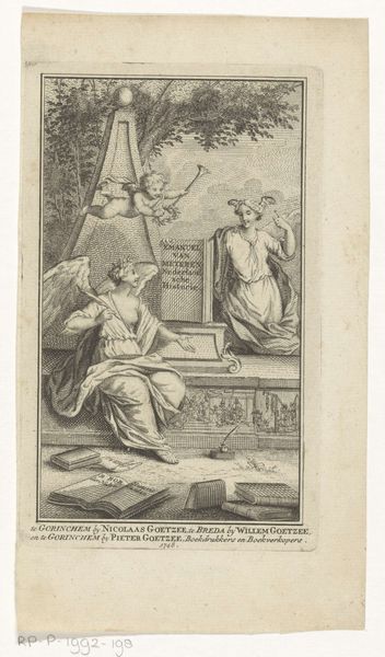Editor: So, here we have Claude Mellan's engraving, "Personificatie van het Geloof geeft aan engel een boek," from 1643. It's currently housed in the Rijksmuseum. The delicate linework and composition give it an ethereal quality, and it feels very much of its time. How do you interpret the meaning behind it, considering its historical context? Curator: Well, thinking about its place in history is key. This image, made during the Baroque period, points to the Catholic Church's efforts in the Counter-Reformation. Mellan created this in a time when religious and political powers were intricately linked, especially within institutions like the Imprimerie Royale du Louvre. How do you think the presence of this image, and its message, served that royal printing house? Editor: I suppose it would add a layer of divine legitimacy. It subtly says, "We're not just printers; we're divinely sanctioned purveyors of knowledge". Did this kind of allegorical image play a broader role in shaping public perception, then? Curator: Absolutely. These engravings acted as a form of visual propaganda, subtly reinforcing Catholic doctrine and the authority of the monarchy. They weren't merely aesthetic objects. How do you perceive the artist's position, creating works for the very powerful Royal Printing House? Editor: I guess Mellan was both artist and instrument, crafting images to support an existing power structure. He uses traditional religious symbology, but to promote a contemporary agenda. It's a clever blend of the sacred and the political. Curator: Precisely. He’s navigating complex institutional dynamics. By producing images like these, Mellan's artistry directly supported and shaped the sociopolitical landscape of 17th-century France. What can we understand about power structures within Baroque-era France when examining Mellan’s choices? Editor: It really illuminates how art, even something seemingly devotional, served to uphold existing power structures. The piece becomes a visual embodiment of that interplay. It's fascinating to consider how deeply art was embedded within politics and religion back then. Curator: Indeed. It demonstrates that art’s “public role” often reflected strategic sociopolitical goals rather than merely artistic or expressive desires.