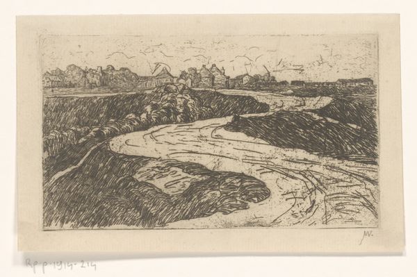 Kees Stoop made this etching of a riverbed, sometime during his lifetime. The entire image is made up of lines, laid down one after the other to create tone and texture. The process is completely visible, so you feel like you could have a go yourself. The density of the lines changes to define the different forms, so you have dark, almost impenetrable thickets of foliage in the foreground, giving way to the lighter, open space of the water. The light reflecting off the water is rendered as a series of horizontal dashes, implying movement across the surface, like the quick flick of a brush. Look at the way Stoop articulates the trees on the left-hand side: it’s like a series of scribbles, but somehow they become solid. There’s something of a connection to be made with Whistler’s etchings here, in the everyday subject matter and the emphasis on mark-making as a form of image-making. Ultimately, it’s the confidence and skill of the artist that brings this scene to life.