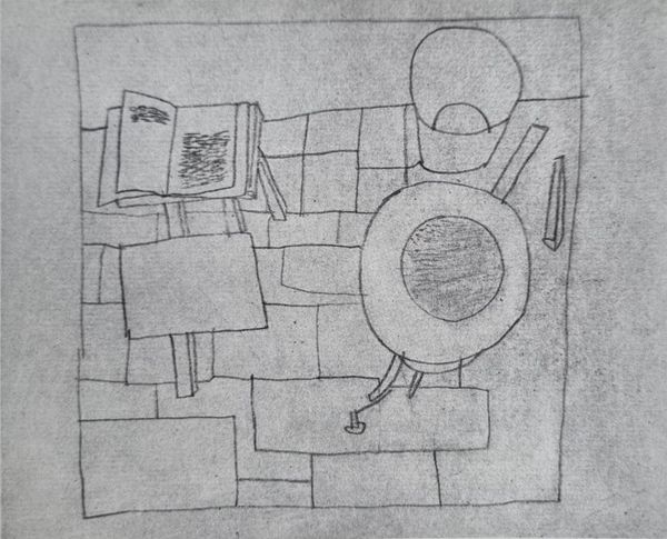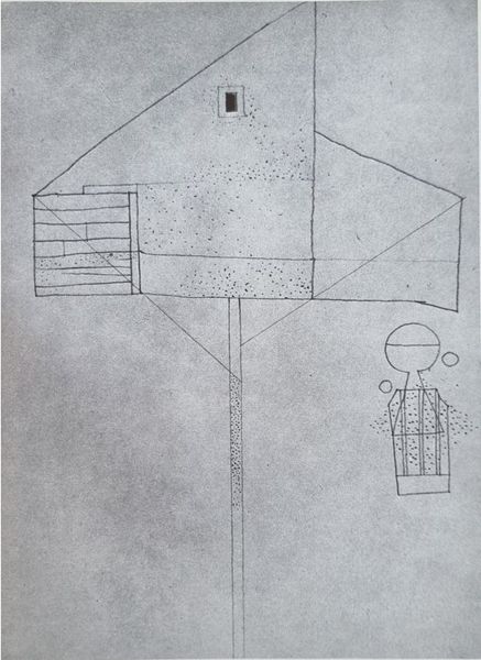 Editor: So, this is Vajda Lajos's "Madárház 1936", ink and pencil on paper. It strikes me as…deliberately simplistic, almost childlike in its depiction of forms, and that central figure gives me a distinct feeling of isolation. What do you see in this piece? Curator: Isolation is a powerful reading. This piece, beyond its deceptively simple rendering, invites us to consider the socio-political climate of 1930s Hungary, deeply fractured by rising fascism and social unrest. The stark geometric shapes could be read as representing a fragmented society, and that 'birdhouse,' or even the stick figure, could symbolize individuals trapped within oppressive structures. Editor: Trapped? That’s interesting. I was focused more on the kind of naive quality of the drawing style, like it was referencing outsider art traditions almost. Curator: It's easy to get hung up on his style – Lajos's artistic project evolved radically, embracing both avant-garde and what you might call folk traditions. He was wrestling with questions of national identity and belonging, but he was doing so from a deeply critical perspective. Is he using simple forms to reach back to something pure, or to critique the limitations imposed on him by this culture? Editor: So, the simplicity might be a form of resistance, a way of critiquing dominant ideologies? Curator: Exactly. Think about who had the right to expression and visibility during that time, and whose voices were marginalized or erased. Artists like Vajda often employed abstraction and seemingly 'naive' forms as a subtle but potent form of dissent. He gives form to this complex identity, one informed by imposed limitations, both politically and culturally. Editor: Wow, I never thought of it that way. I guess there's a lot more happening beneath the surface than I initially realized. This helps me realize the art has more depth and makes me want to read more about it. Curator: Absolutely! That's the beauty of art; it’s a mirror reflecting the complexities of the world.