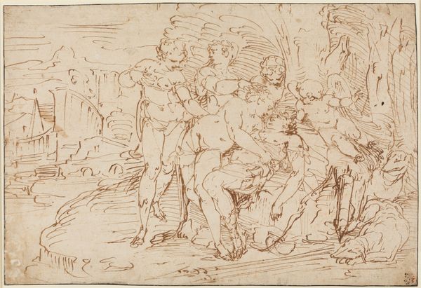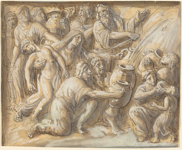 Francesco Vanni rendered this drawing, Christ Washing the Disciples' Feet, with pen and brown ink, and watercolor. Here, the act of washing feet is not merely practical, but a profound symbol of humility and service. Consider how this gesture resonates across cultures. The act of kneeling, common in ancient rituals, signifies submission or reverence. This contrasts with the halo above Christ, indicating divinity. It is a paradox—the divine humbling itself. Such images carry deep psychological weight, engaging our subconscious through familiar motifs of care and authority. This scene has resurfaced countless times in art history, each instance reinterpreting its message. The symbol evolves, reflecting societal shifts in power and belief, yet the core themes of humility and service remain potent, echoing through time.