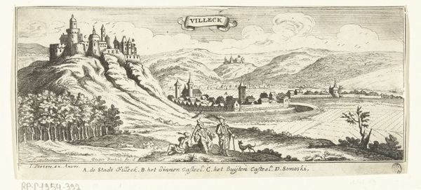 This print, *View of Veszprém*, was made by Gaspar Bouttats sometime in the late 17th century. It's an engraving, meaning that the image was incised into a metal plate, probably copper. Ink was then applied to the plate and the excess wiped away, leaving ink only in the incised lines. Finally, paper was pressed against the plate to create the print. Engraving was a highly skilled process, requiring years of training to master the use of specialized tools to create lines of varying thickness and depth. The printmaking trade was closely tied to wider social issues of labor, politics, and consumption. Creating a print like this involved the labor of multiple individuals, from the artist who designed the image to the engraver who translated it into metal, the printer who operated the press, and the publisher who marketed and distributed the finished product. By understanding the materials, making, and context of this print, we can gain a deeper appreciation for the skilled labor and social networks that made such images possible.