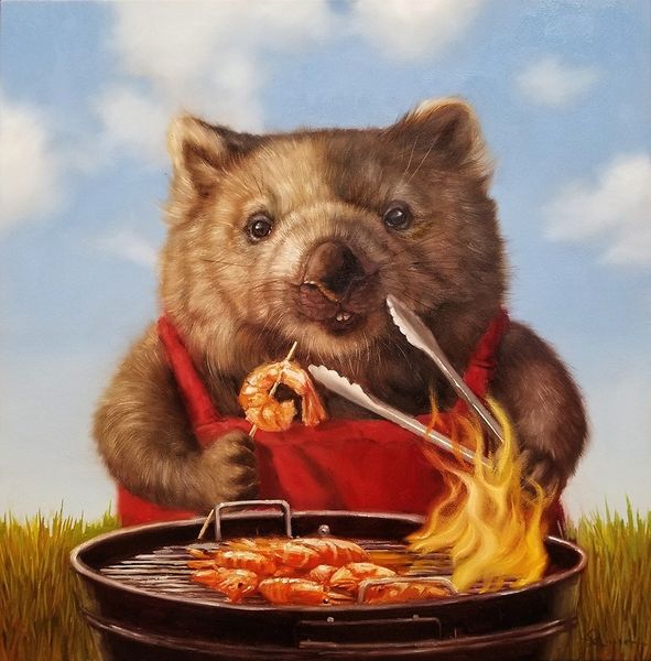 Siegfried Zademack painted "Das Lamm und der Wolf" with a realism that’s almost surreal. The muted palette gives it a dreamlike quality, but the contrast with the heightened reality of the Wolf makes the whole scene unsettling. There’s a real push-pull here between the smooth finish and the disturbing imagery. Look at the Lamb, it’s painted on paper and taped onto the canvas, like a collage. The texture is so smooth, but the tape and the lamb create an unholy feeling. And that wolf, every tooth is a perfectly rendered threat! What I find so interesting is the way the artist combines hyperrealism with this almost cartoonish element. It reminds me of early Philip Guston, who also played with the edge between representation and something more… symbolic, maybe? It makes you wonder: what's real, what's not, and what are we supposed to *feel* about it?
