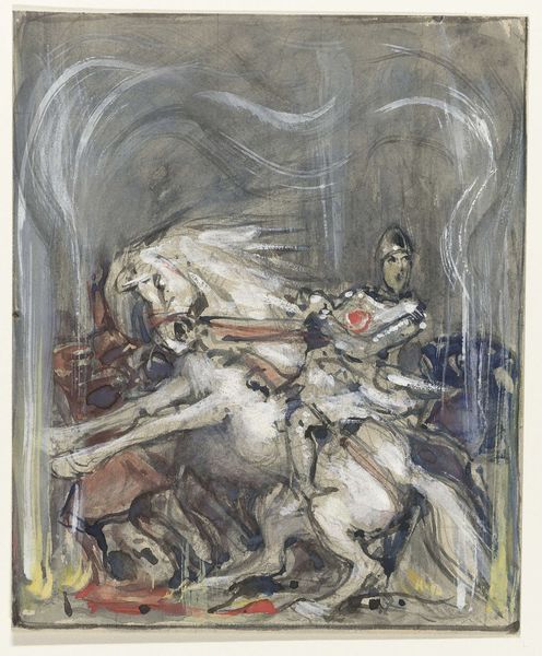 Editor: This is Elizabeth Olds' "The Carousel," created in 1940. It's a lithograph, and I'm struck by how it captures movement, but also a certain kind of contained joy. It feels very much of its time. What do you see in this piece? Curator: This lithograph operates as a fascinating commentary on accessibility and escapism during a tumultuous period. Olds made this during the Great Depression. Who had access to leisure? Who was riding high on the carousel and who was left on the ground, watching? What does the flattening of perspective do to the image, politically? Editor: I hadn't considered that economic angle at all. The limited color palette makes it feel less overtly celebratory now that you mention it. Almost like a bittersweet memory. Curator: Exactly. And what about the figures themselves? They’re almost caricatures, aren’t they? Are they truly enjoying the ride, or is there a sense of performance, even desperation, in their faces? Consider this work alongside other WPA era art— what shared anxieties or hopes do you find? Editor: I guess the slightly manic energy of the horses contributes to that sense, too. It's not pure, innocent fun. I’m seeing it less as a straightforward depiction and more as…a social commentary, now. Curator: Precisely. Olds encourages us to question the narratives we tell ourselves about progress and leisure. She's asking, who gets to participate and at what cost? What did you find most insightful about the era and how the imagery reflected that sentiment? Editor: Definitely thinking about it in its historical and social context. It's not just a fun image of a carousel, it reflects the era’s anxieties and inequalities. It makes me wonder what a contemporary version would look like! Curator: Indeed! Keeps the dialogue alive, doesn't it? Thanks to Olds, this 'simple' scene continues its commentary.