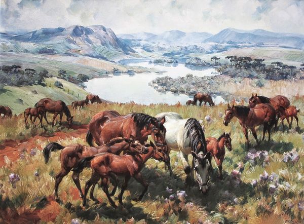 Charles M. Russell made this dramatic scene on canvas with oil paints. The loose brushwork and earthy tones capture the dynamism of a stagecoach under attack, the figures and horses rendered with expressive energy. Russell's choice of oil paints and canvas links him to a tradition of European painting, yet he applied these materials to a subject matter deeply rooted in the American West. The texture of the paint, applied in visible strokes, conveys movement and tension, reflecting the chaos of the scene. This technique invites us to consider Russell's process, balancing his command of painterly techniques with his subject matter. Russell was part of a generation of artists creating romanticized visions of the 'Wild West' at a time when its realities were fading. The making of art, like much else, is always tied to wider issues of labor, politics, and consumption. Russell’s painting challenges the distinction between fine art and storytelling through the use of accessible material to convey complex realities.