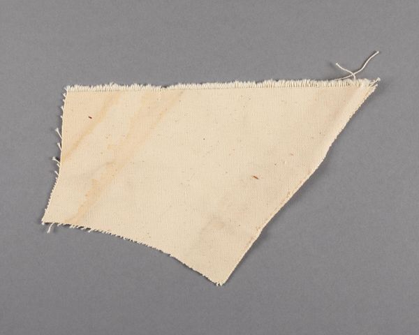 Curator: This is a painted canvas fragment by Barnett Newman, part of the collection at the Harvard Art Museums. Editor: Well, it immediately strikes me as incomplete, almost like a discarded idea—the raw canvas contrasting with that vibrant, almost urgent, field of red. Curator: Newman's use of the "zip," the vertical band, is central to his exploration of the sublime. Here, the red band is truncated but it evokes a sense of division, perhaps even a primal separation. Editor: I see the raw edges, the exposed thread, as integral to the piece. It's not just about color; it's about the material reality of painting, challenging the notion of a perfectly resolved image. Curator: I wonder if the fragment carries the weight of something lost, a broken promise in its stark simplicity. Does the color evoke passion, rage, or something else? Editor: Perhaps its power lies in its ambiguity. We're left to grapple with the pure visual elements, the tension between the raw and the painted, the cut and the continuous. Curator: A potent reminder that even fragments can hold profound meaning. Editor: Yes, and that meaning resides not just in what's there, but what we bring to it.