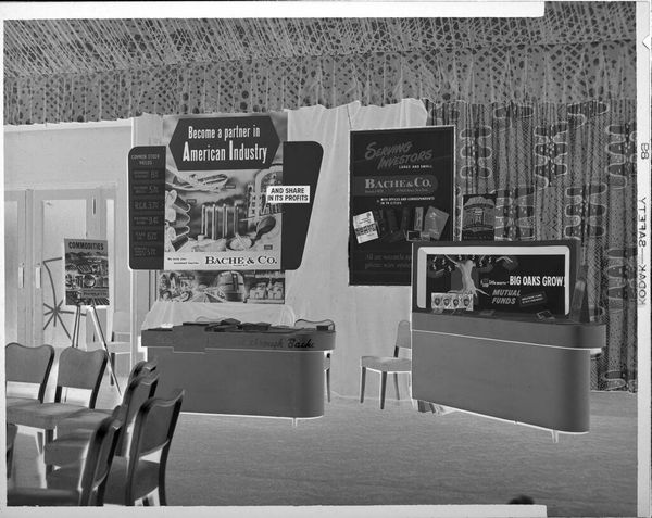 Curator: This evocative image, captured by John Deusing, is an untitled view of a McLellan's store interior. The crisp lines create a striking composition. Editor: It has a ghostly feel to it, like stepping back into a forgotten memory of mid-century consumerism. The high contrast emphasizes the geometry. Curator: Precisely. The image, roughly 8 by 10 inches, invites us to consider the social context of these department stores. McLellan's was a staple of the working class, selling affordable goods. The materiality of everyday life, on display. Editor: And the repeated rectangles—the shelves, the windows, even the "OVEN" sign—create a formal visual rhythm. The photographer uses light to guide your eye. Curator: These spaces shaped communities. This photograph becomes more than just a record; it's a document of labor and trade, reflecting the complex systems that underpinned everyday life. Editor: The simplicity of composition emphasizes Deusing's mastery, transforming the mundane into a study of light and form. I see beauty in how the store is arranged.